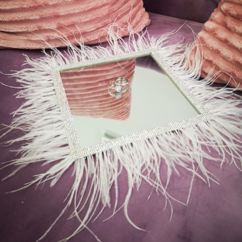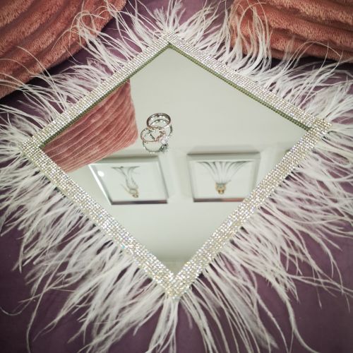Διακοσμητικός νυφικός καθρέπτης με στρας και πουπουλα