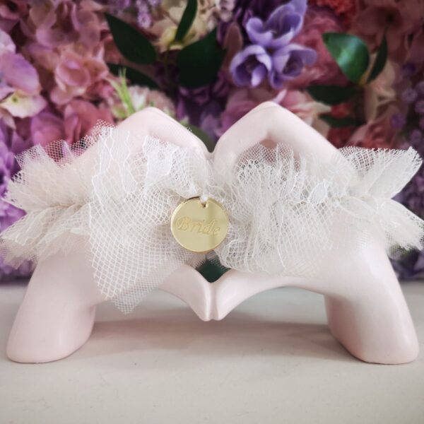 νυφική καλτσοδέτα με plexi glass bride και φιόγκο