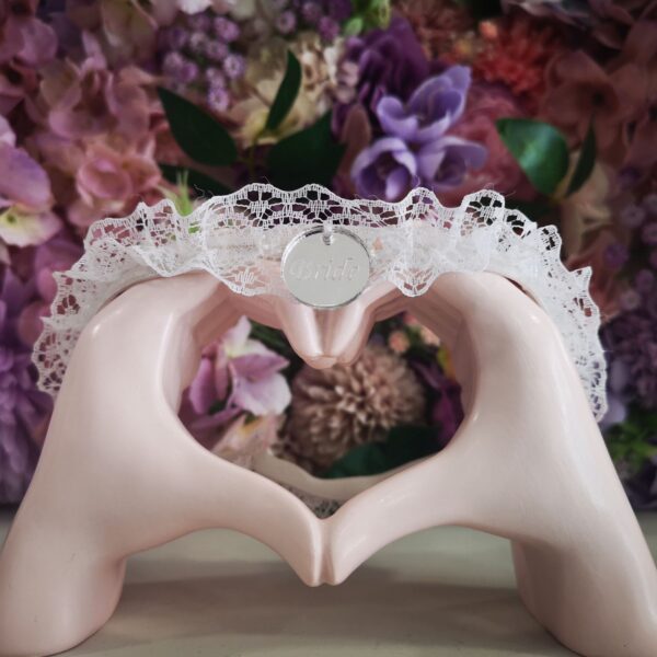 νυφική καλτσοδέτα με plexi glass bride και ιριδίζον πετρες