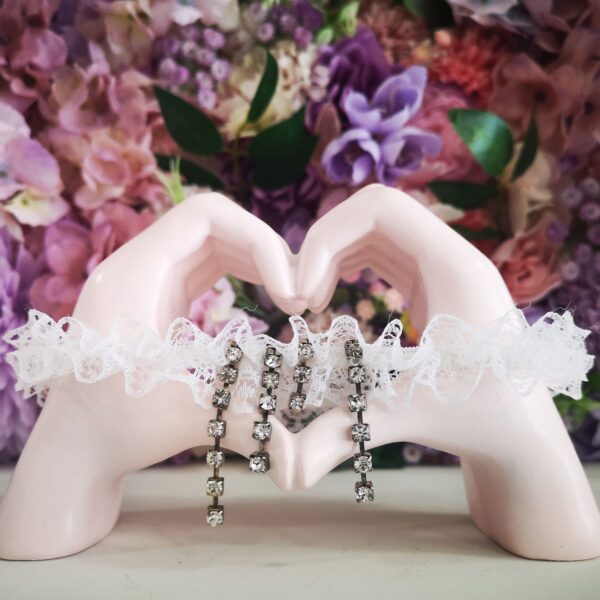 νυφική καλτσοδέτα με κρεμαστά στρας