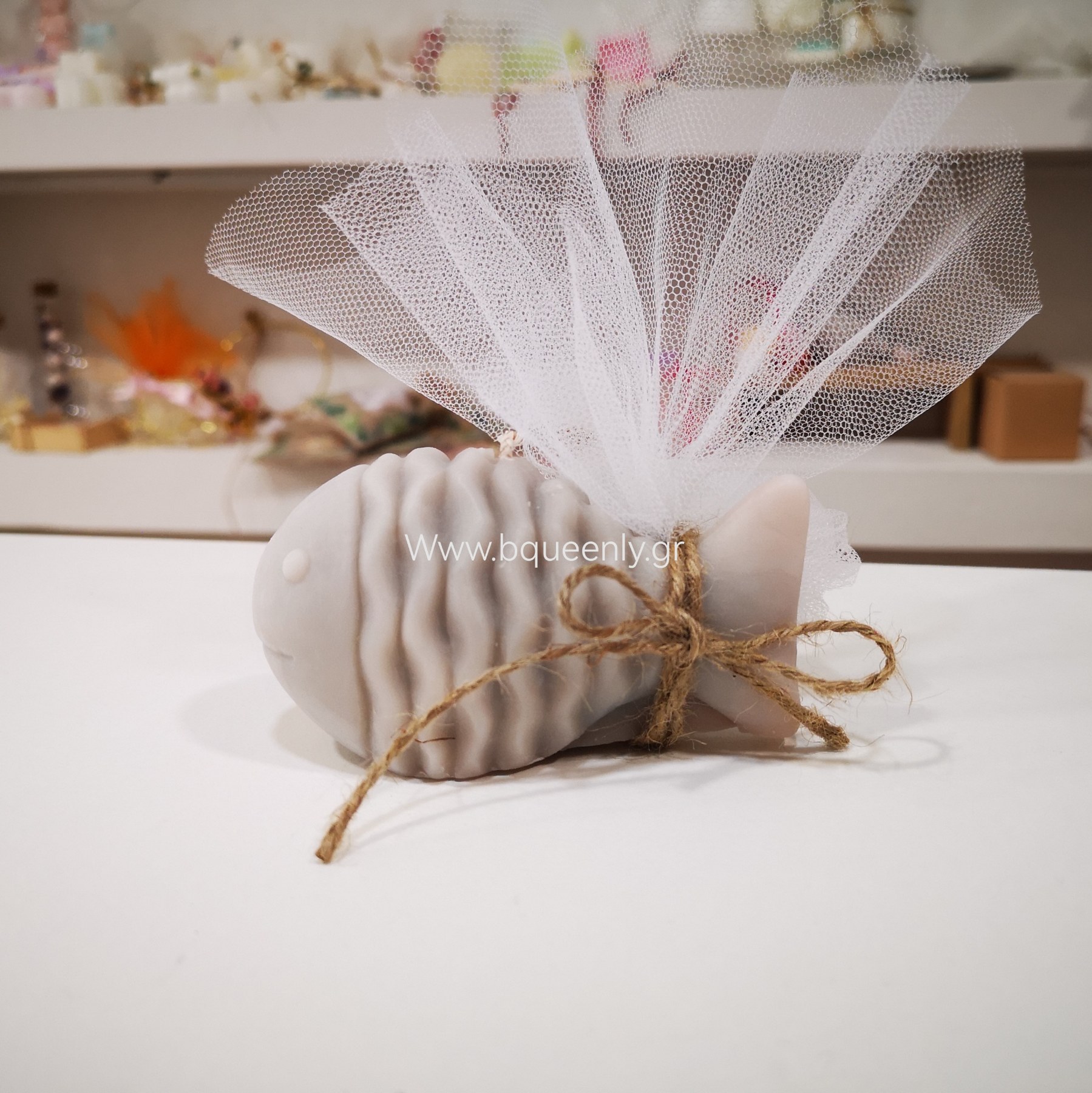 μπομπονιερα βαπτισης κερι σχεδιο ψαρι.