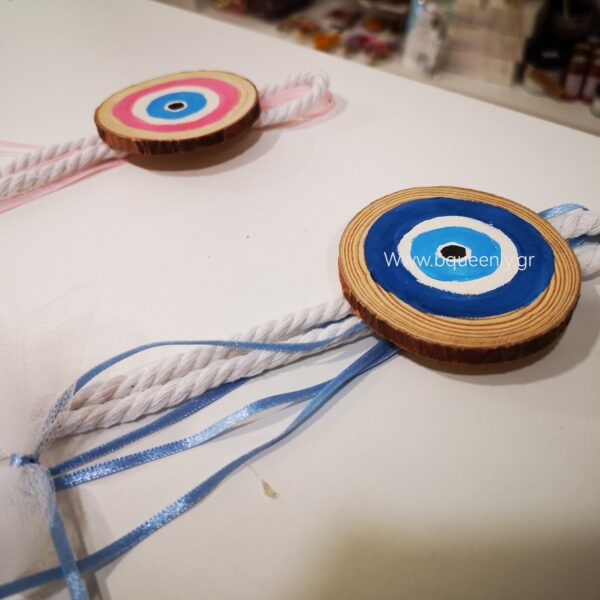 Μπομπονιερα σχεδιο ματι πανω σε κορμο χειροποιητο